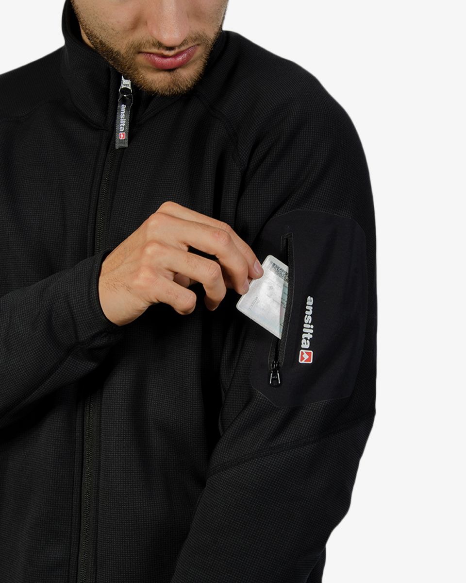 Bolsillo pegado en la manga, ideal para acceso rápido y seguro a pequeños esenciales como tarjetas, llaves o dispositivos. Diseño discreto y funcional que minimiza el volumen, manteniendo tus objetos a mano.
