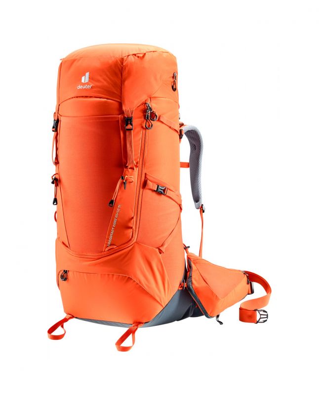 Su comodidad de transporte superior se debe al sistema de espalda Aircontact de Deuter con malla Air Spacer y un gran canal de ventilación, además de correas de hombro ergonómicas ActiveFit y una correa de esternón ajustable.